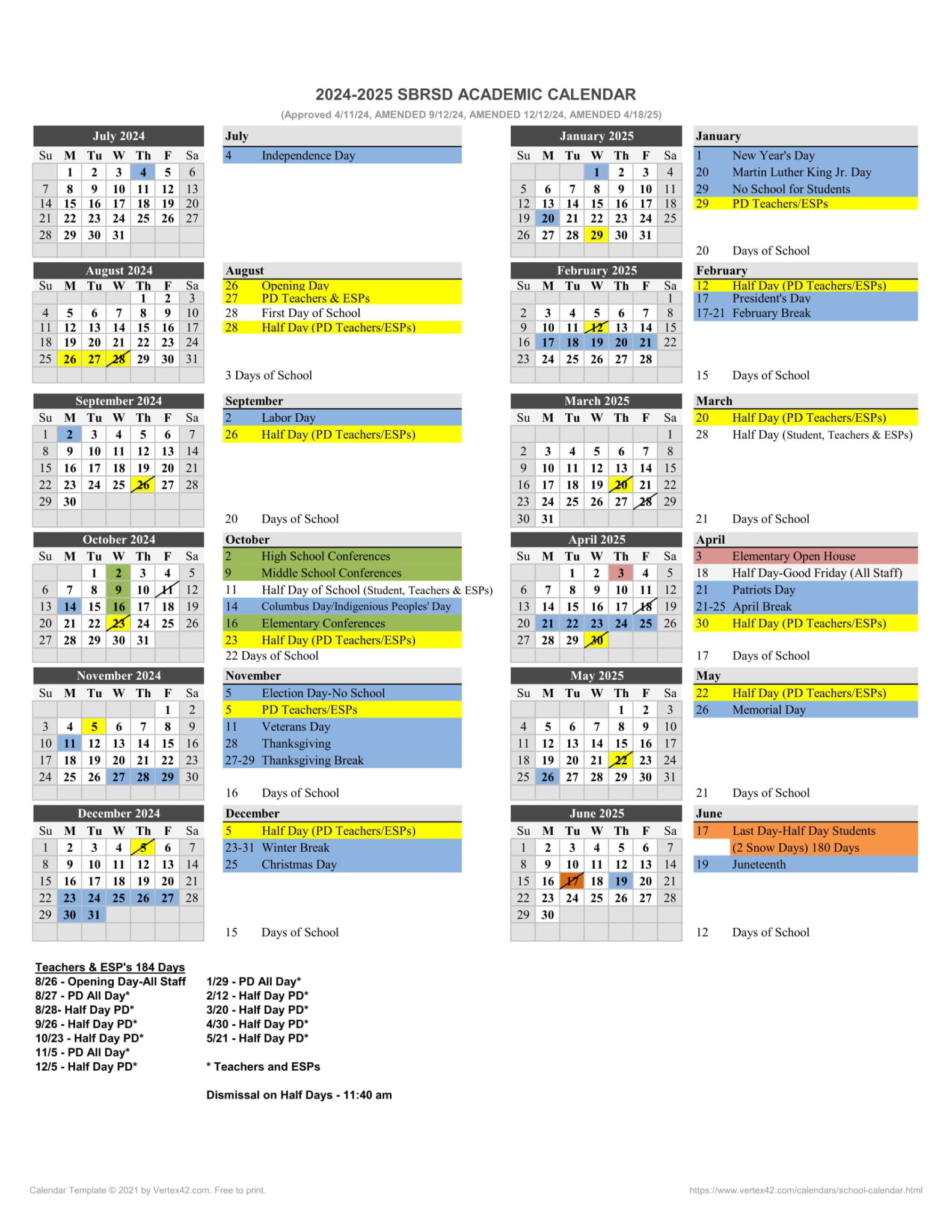 Southern Berkshire Regional School District Calendar 25 26 Revised PDF