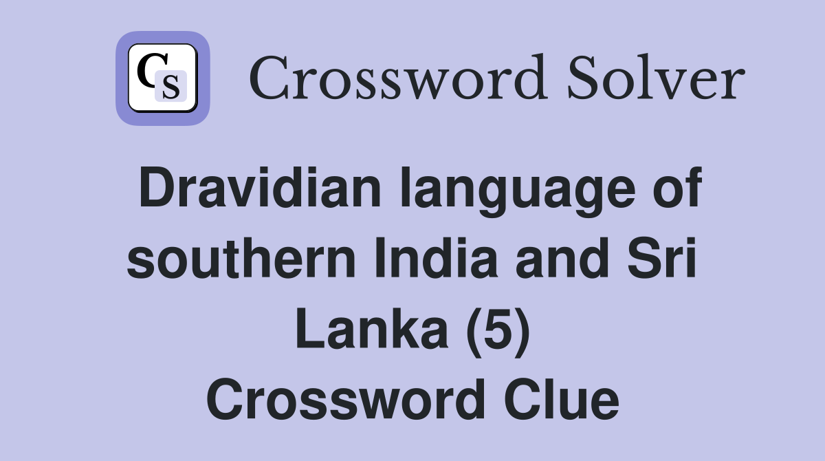 Dravidian language of southern India and Sri Lanka (5) Crossword Clue