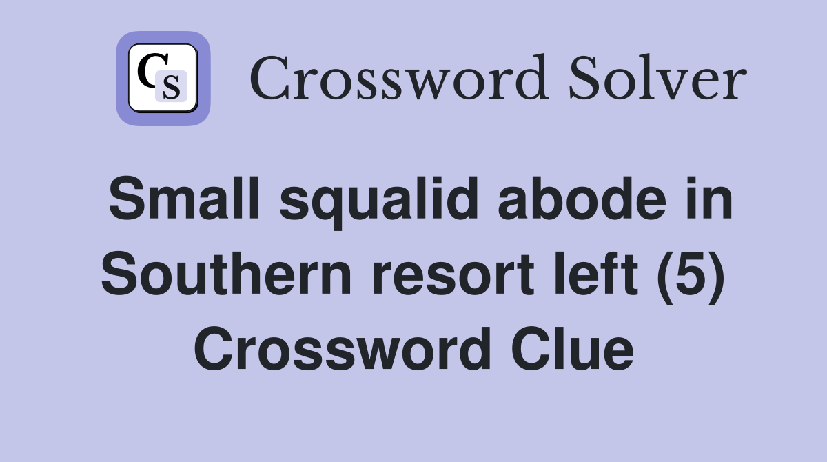 Small squalid abode in Southern resort left (5) Crossword Clue