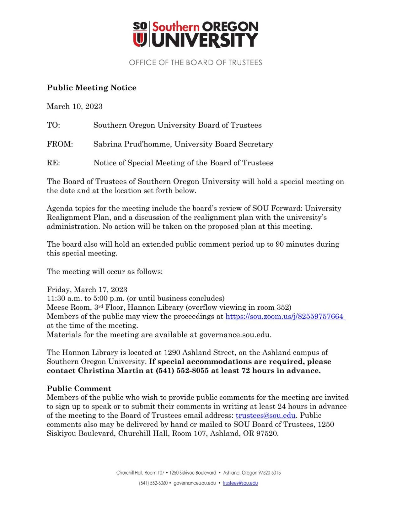 Bailey presents draft of realignment plan to SOU Board SchoolWatch