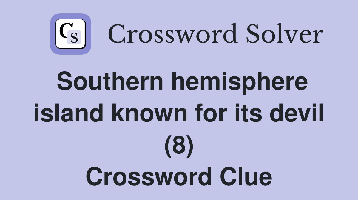 Southern hemisphere island known for its devil (8) Crossword Clue