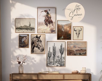 VINTAGE Southwestern Gallery Wall Collection Set of 9 Western Cowboy