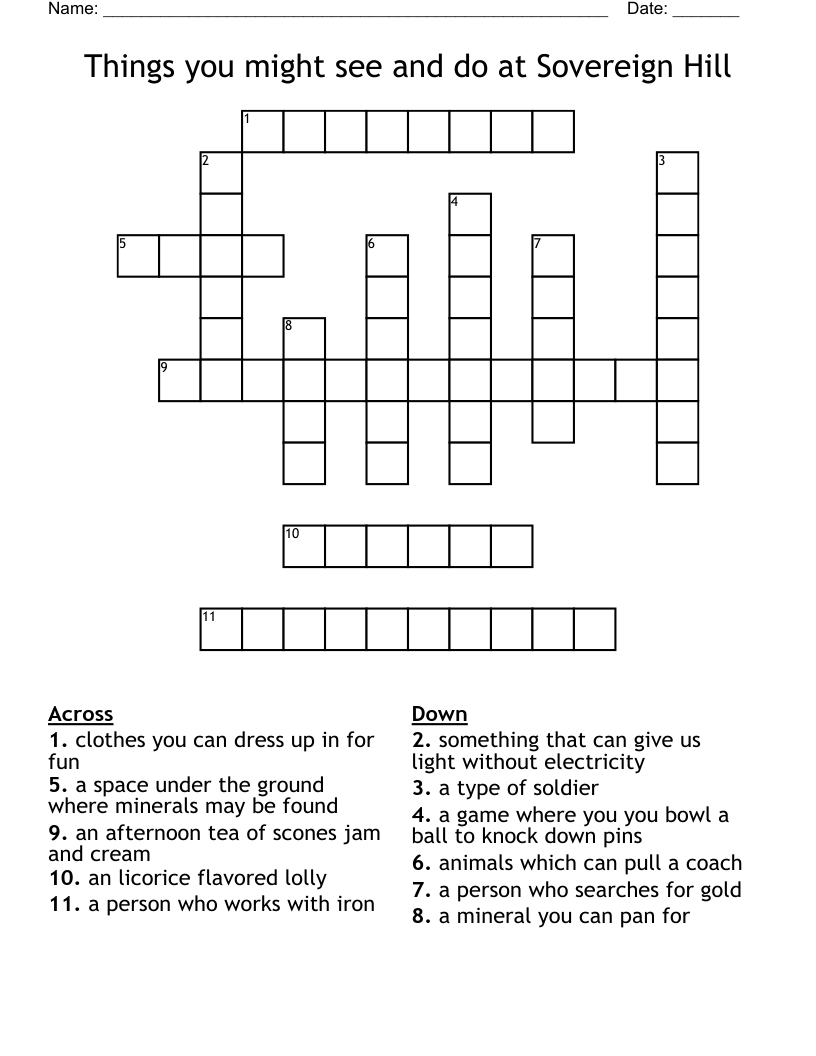Things you might see and do at Sovereign Hill Crossword WordMint