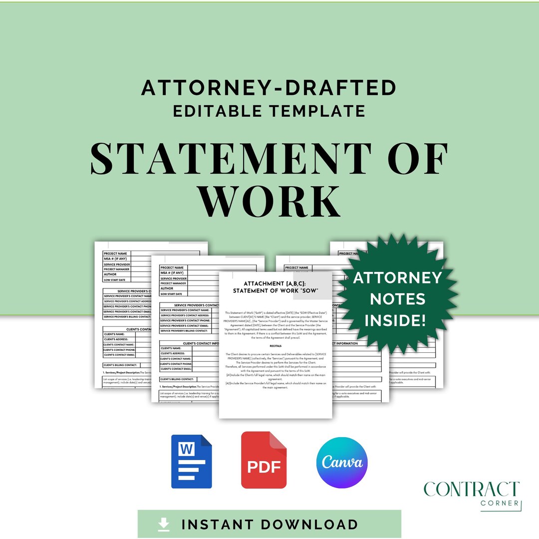 Statement of Work (SOW) Contract Template Attorney drafted Editable