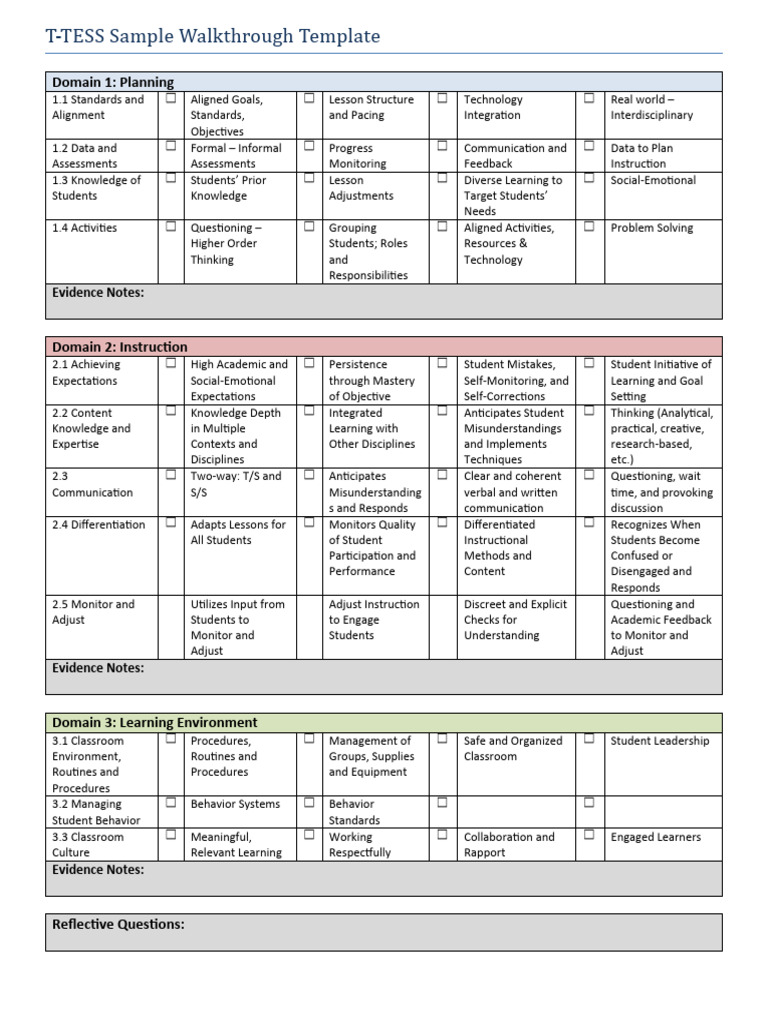 T TESS Walkthrough Template Guide PDF Learning Human Communication