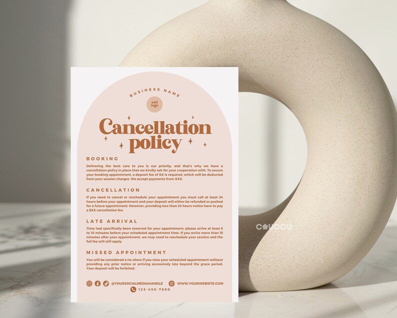 Editable Cancellation Policy Template Retro Cancellation Spa Policies