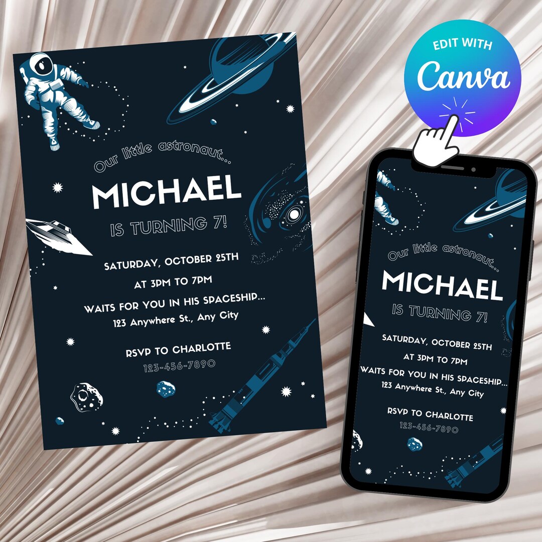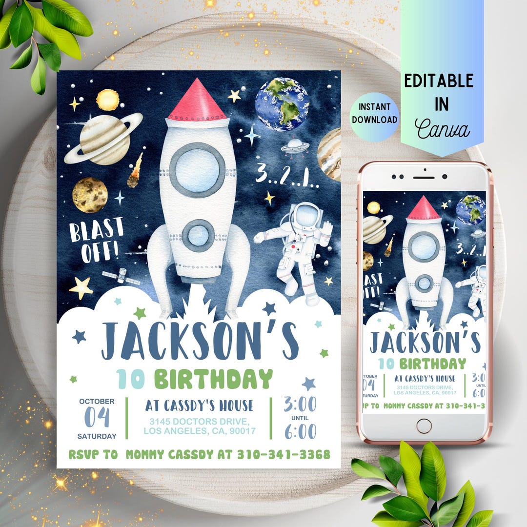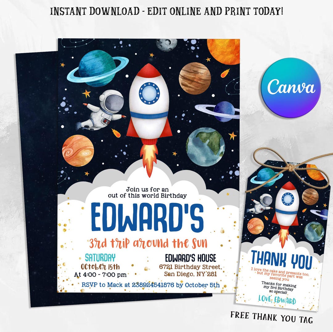 Space Birthday Invitation Template Astronaut Planet Rocket Etsy