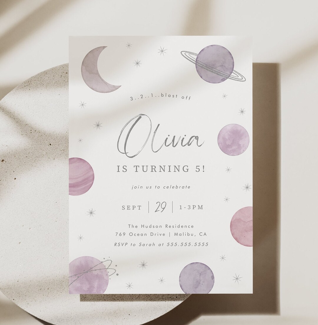 Space birthday invitation solar system birthday invitation planets