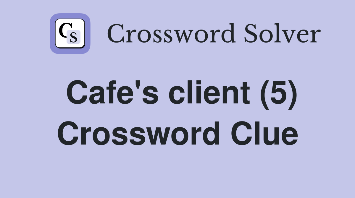 Cafe s client (5) Crossword Clue Answers Crossword Solver