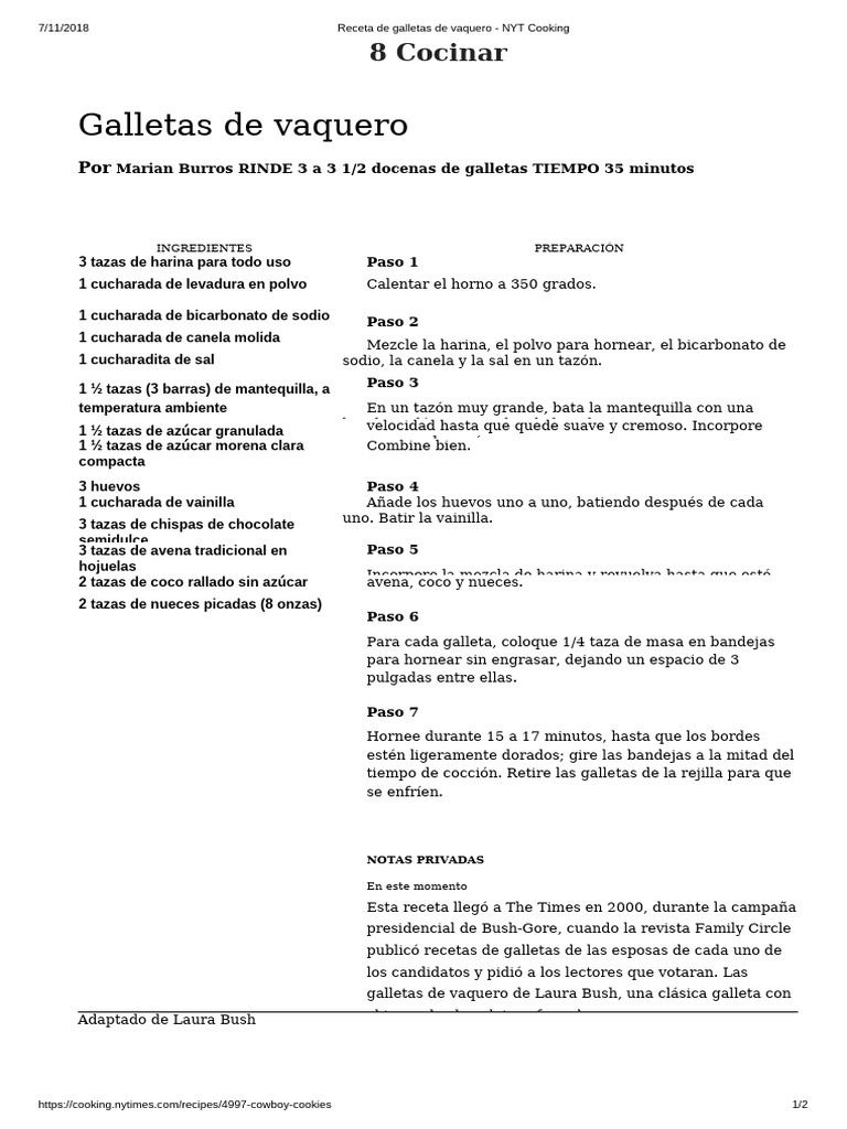 Receta de Galletas Cowboy NYT Cooking PDF Galleta Alimentos