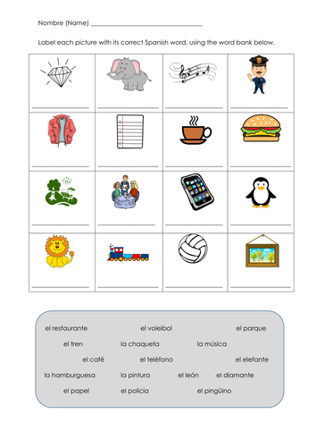 Spanish cognates worksheet Teaching Resources
