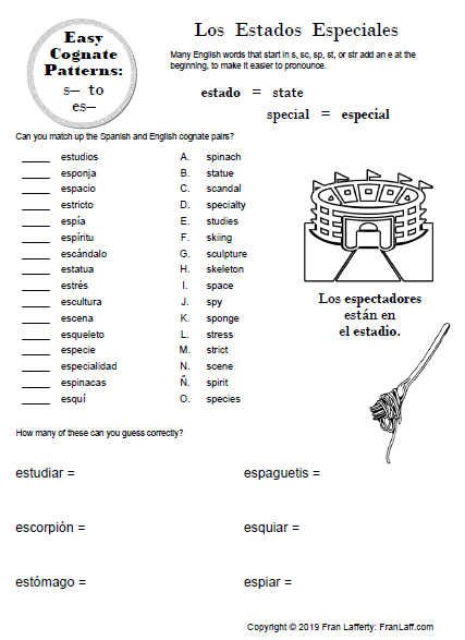 Spanish to English COGNATES FranLaff com Worksheets Library