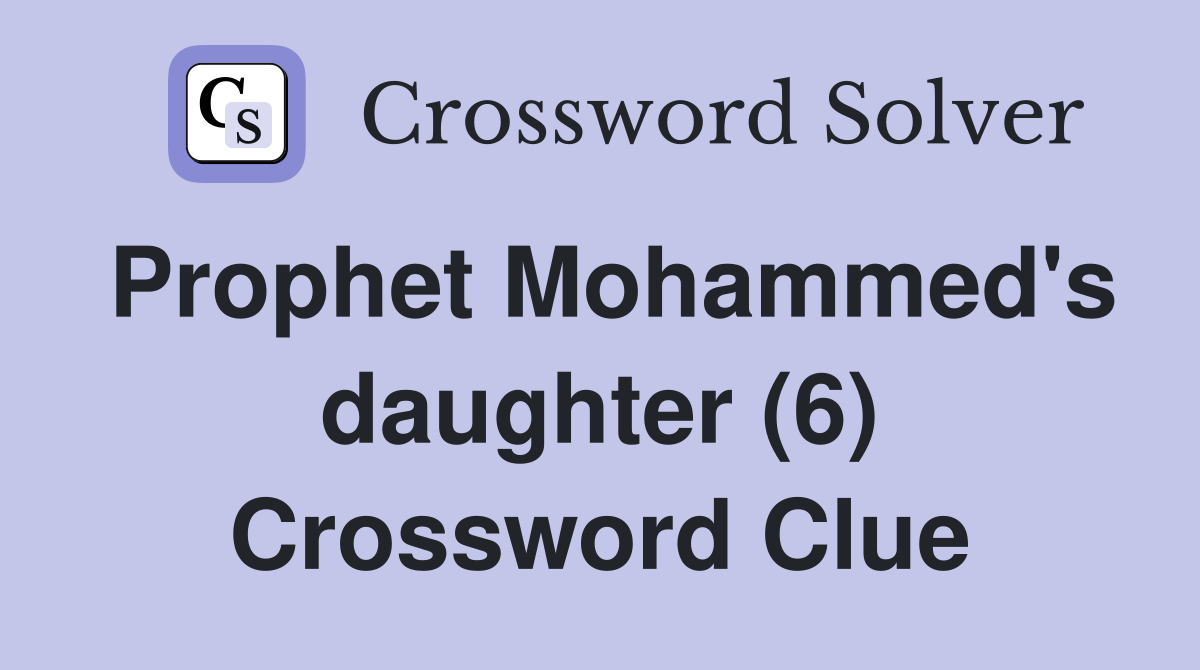 Prophet Mohammed #39 s daughter (6) Crossword Clue Answers Crossword Solver