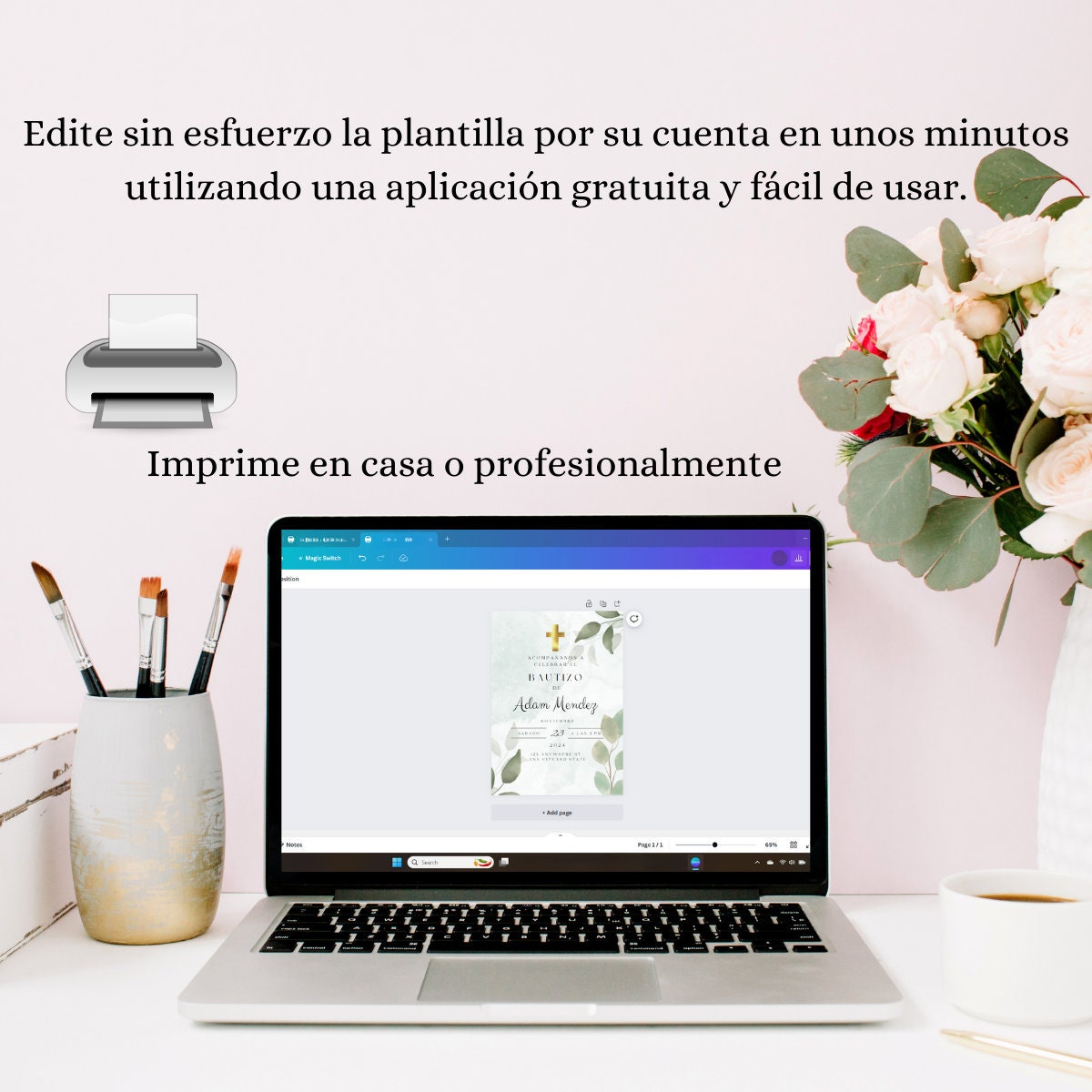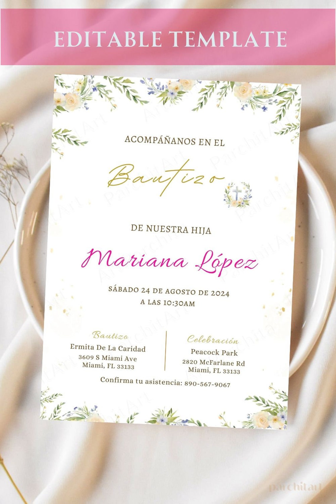 Wildflower Baptism Invitation Template Invitacion De Bautizo Con