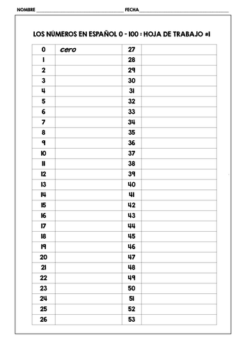 Here are some of the images for Spanish Numbers 1 100 Printable that we found in our website database.