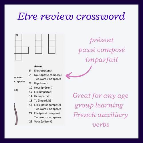 French ÊTRE verb review crossword: présent passé composé imparfait (FSL)