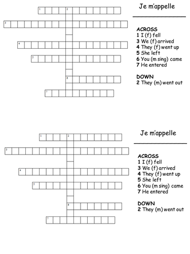 Past tense with ETRE crossword Teaching Resources