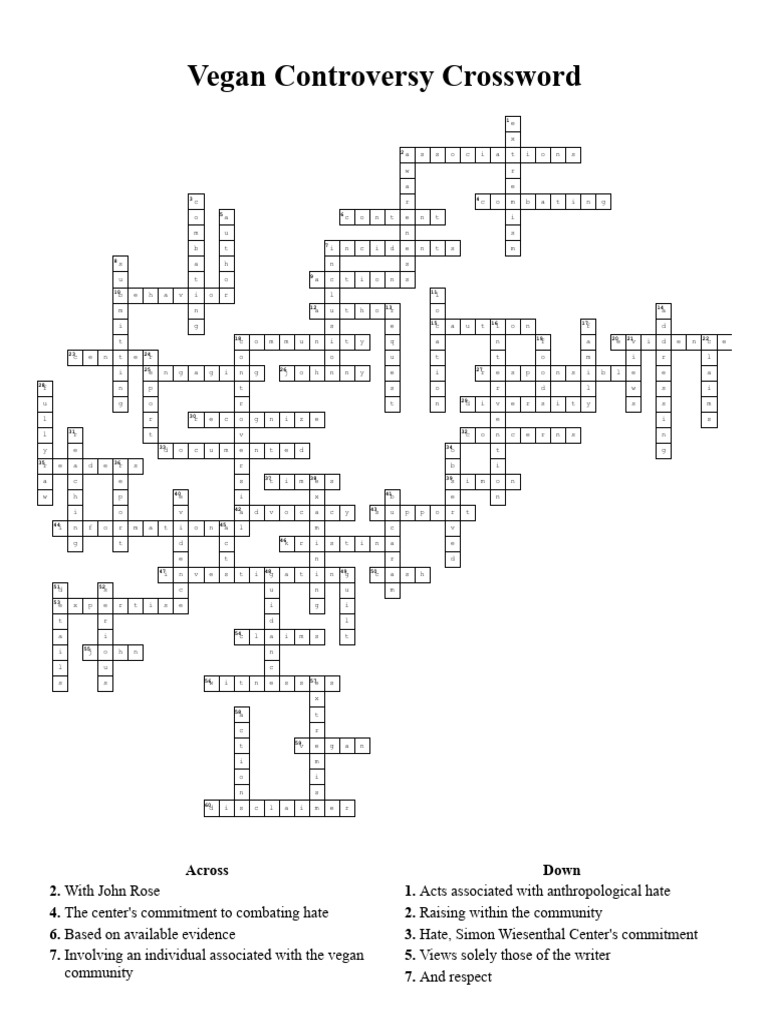 Vegan Controversy Crossword Puzzle PDF