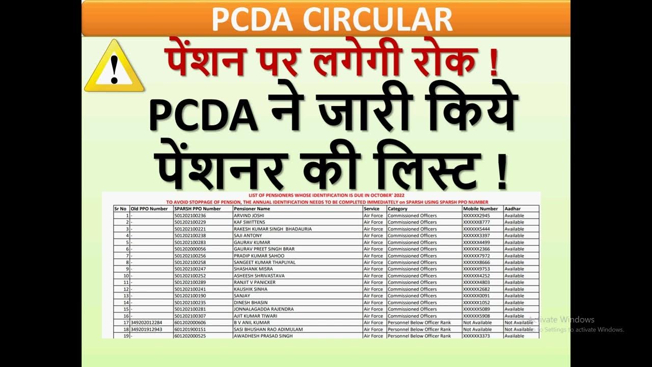 sparsh life certificate pcda circular पेंशन पर लगेगी रोक PCDA ने