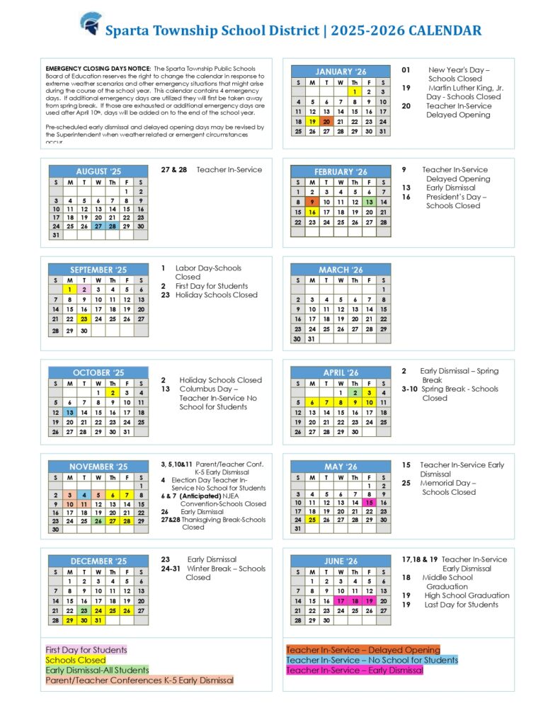 Sparta Township Schools #39 2024 2025 Calendar Sparta NJ News TAPinto