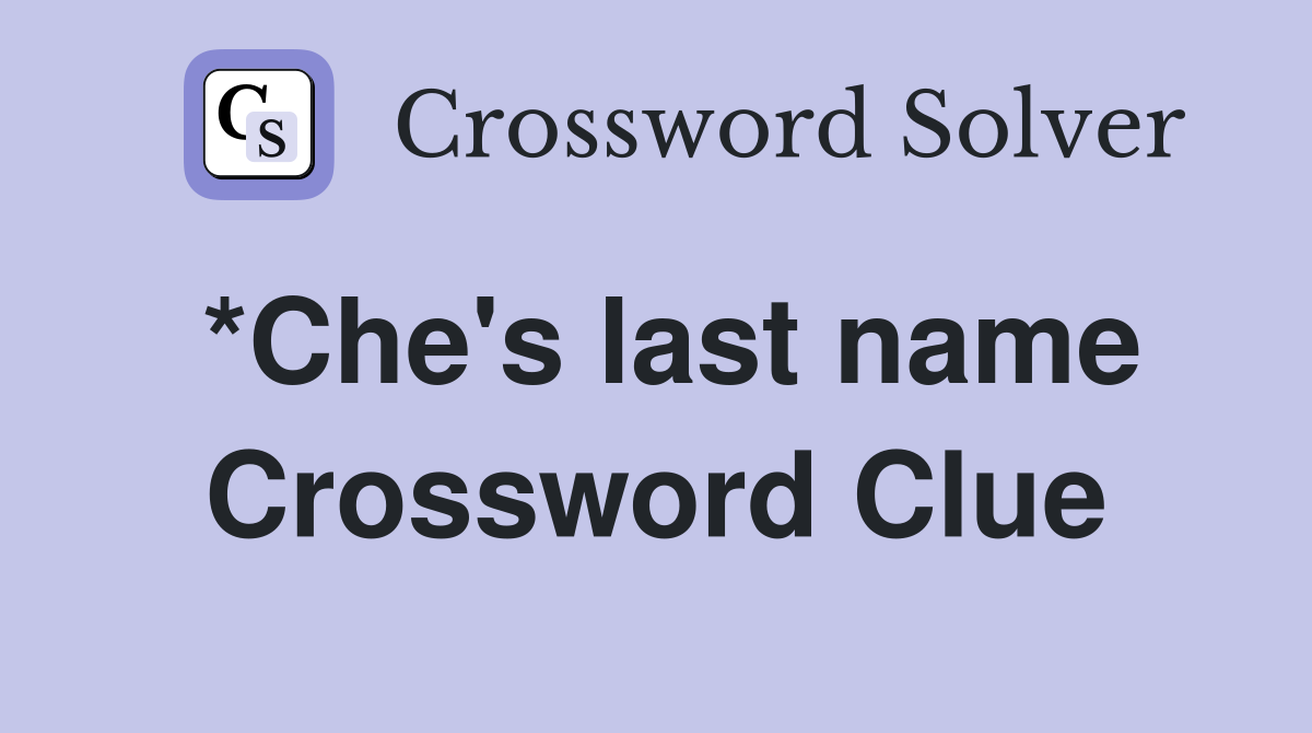 *Che #39 s last name Crossword Clue Answers Crossword Solver