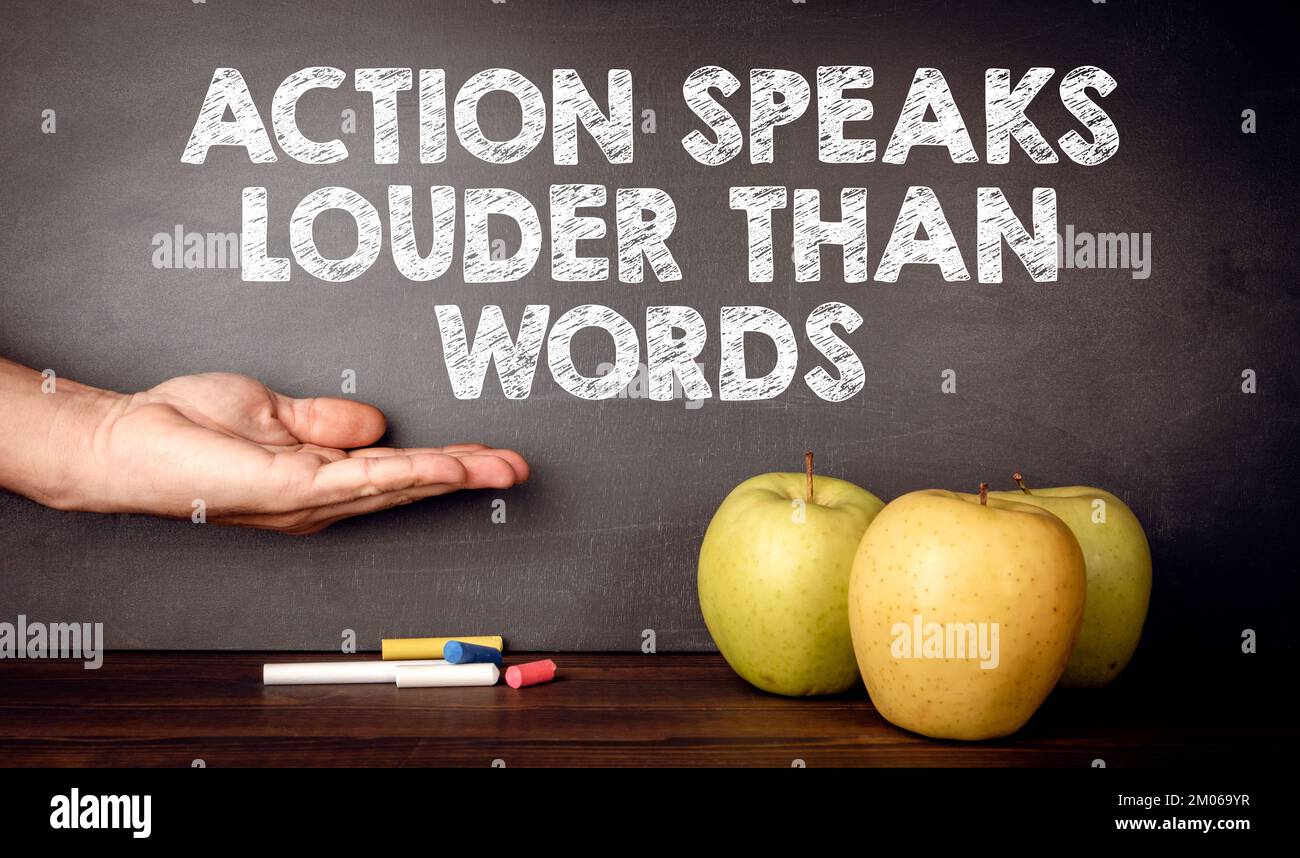 Action Speaks Louder Than Words Concept Teacher #39 s desk Stock Photo Alamy
