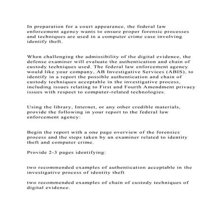 In preparation for a court appearance the federal law enforcement a docx
