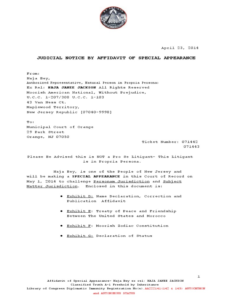 Notice of Special Appearance PDF Nationality Pro Se Legal