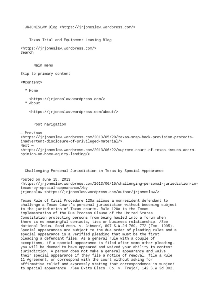 Texas Special Appearance PDF Personal Jurisdiction Pleading