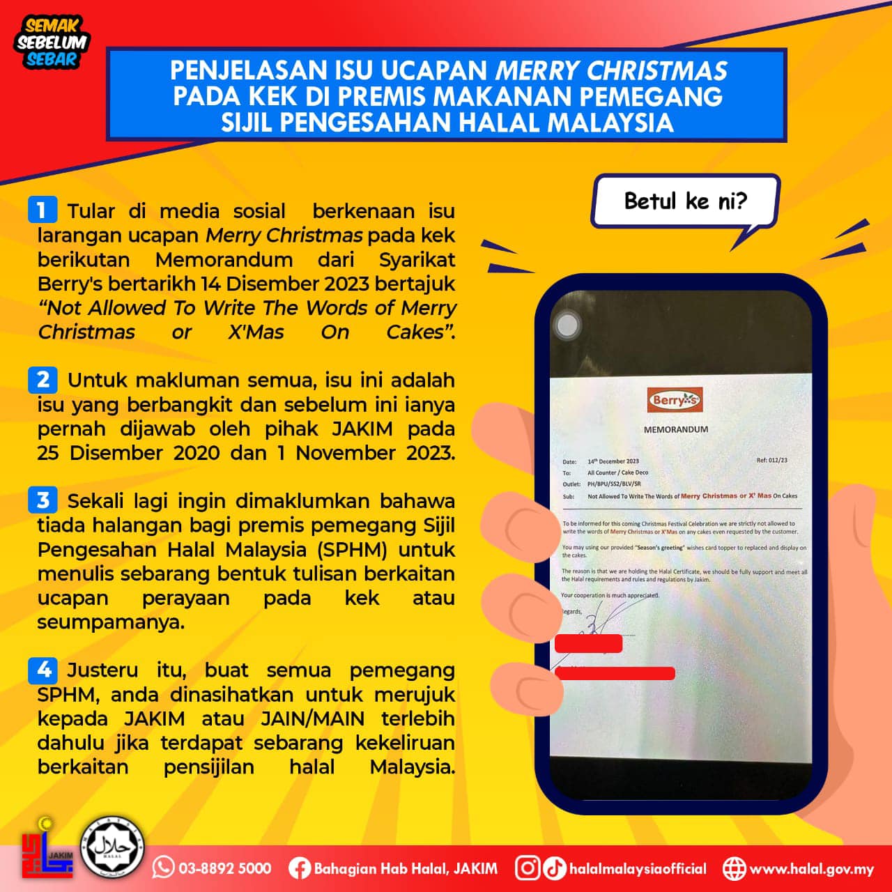 清真认证蛋糕店拒写 圣诞快乐 宗教部长JAKIM齐澄清没禁止! 988