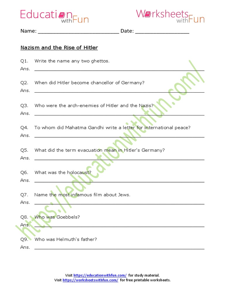 Nazism Worksheet PDFGermany Adolf