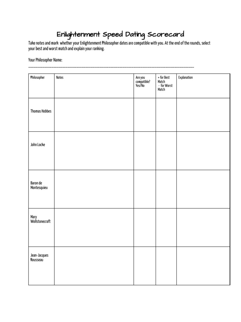 Speed Dating Score Sheet Download Printable PDF Templateroller