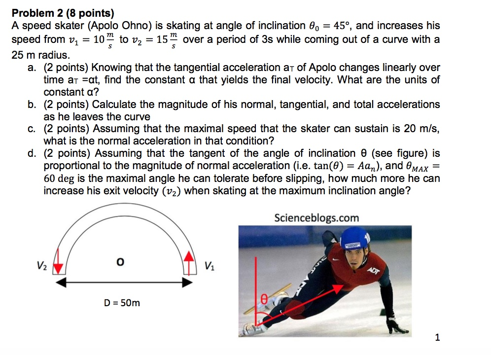 Solved Problem 2 (8 points) A speed skater (Apolo Ohno) is Chegg com