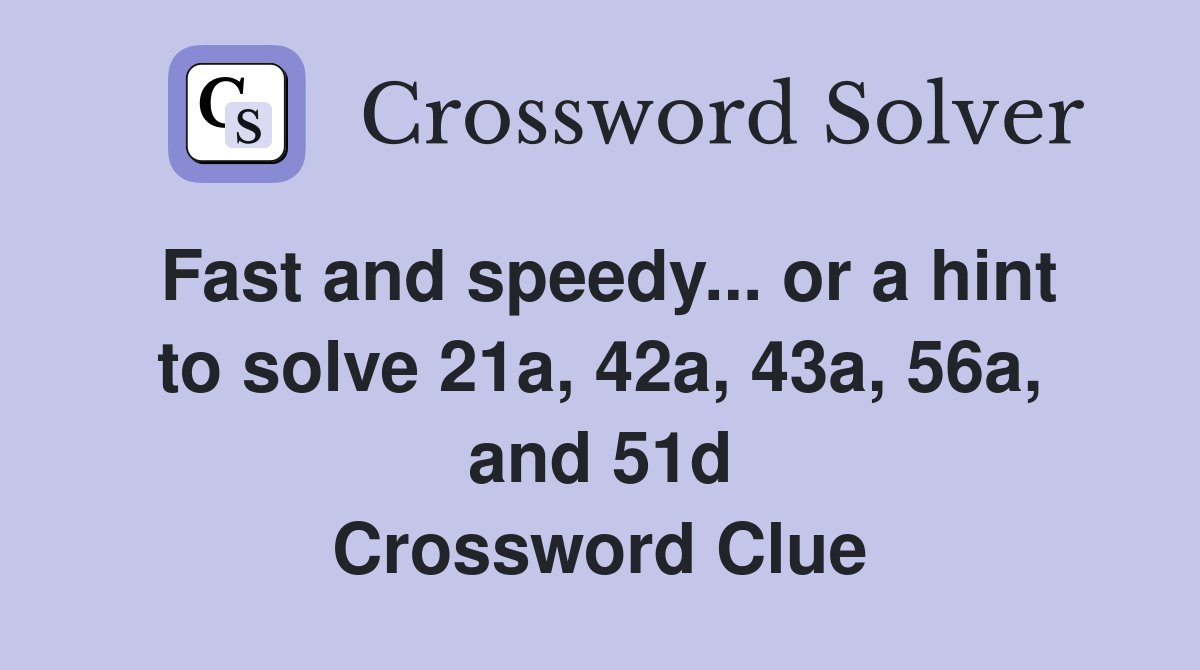 Fast and speedy or a hint to solve 21a 42a 43a 56a and 51d