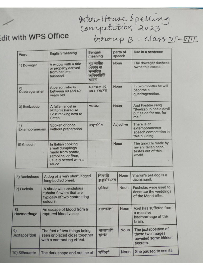 Spelling Competition English PDF