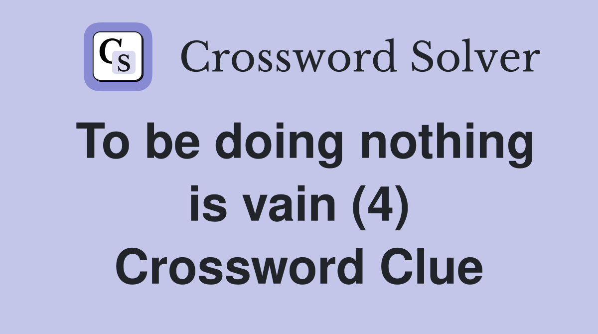 To be doing nothing is vain (4) Crossword Clue Answers Crossword Solver