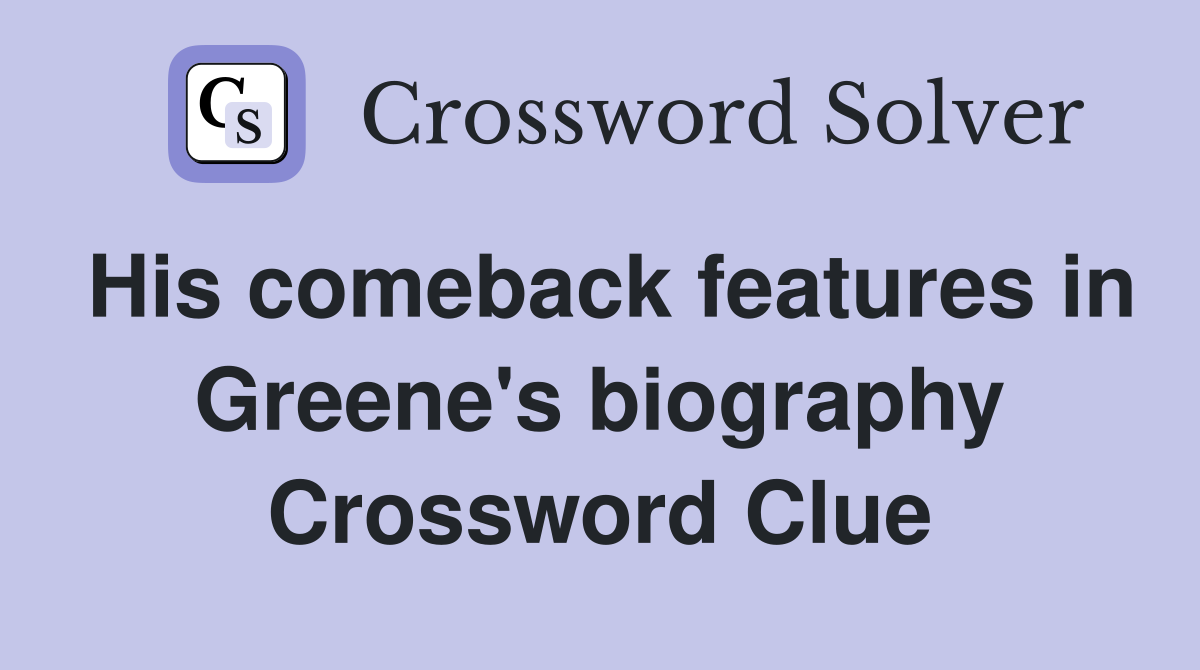 His comeback features in Greene #39 s biography Crossword Clue Answers