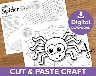 Spider Printable Craft Halloween Craft Preschool Activity Kids Cut