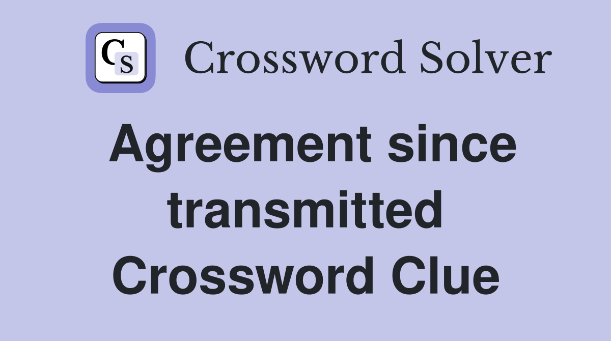 Agreement since transmitted Crossword Clue Answers Crossword Solver