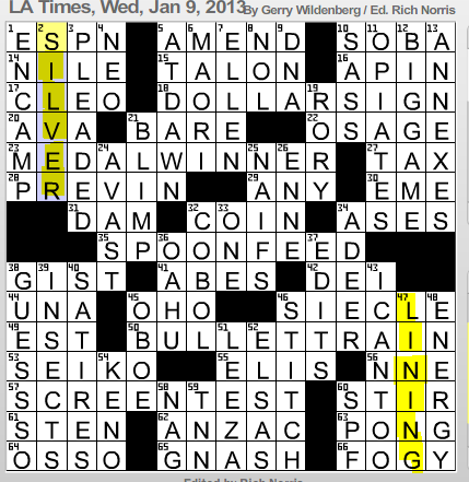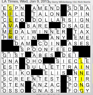 L A Times Crossword Corner: Wednesday Jan 9 2013 Gerry Wildenberg
