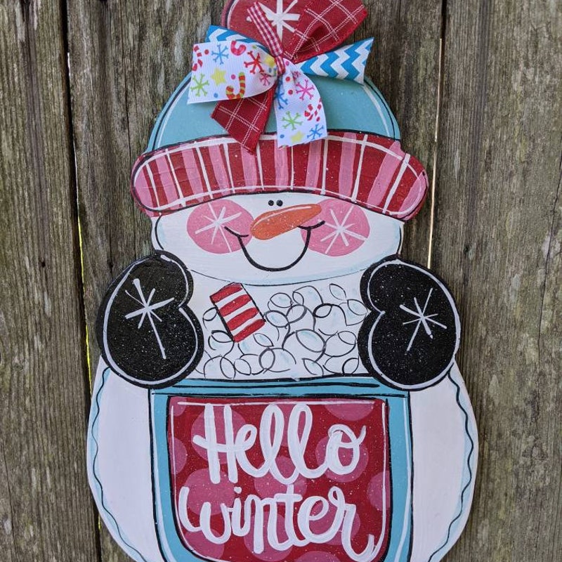 Snowman Door Hanger Snowman Decor Winter Hanger Etsy