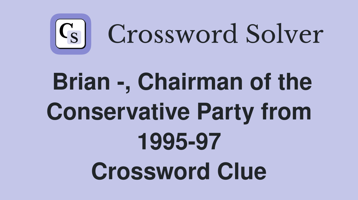 Brian Chairman of the Conservative Party from 1995 97 Crossword