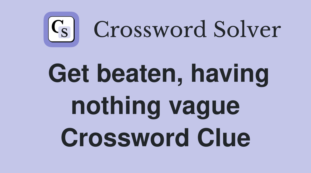 Get beaten having nothing vague Crossword Clue Answers Crossword