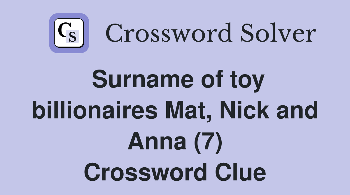 Surname of toy billionaires Mat Nick and Anna (7) Crossword Clue