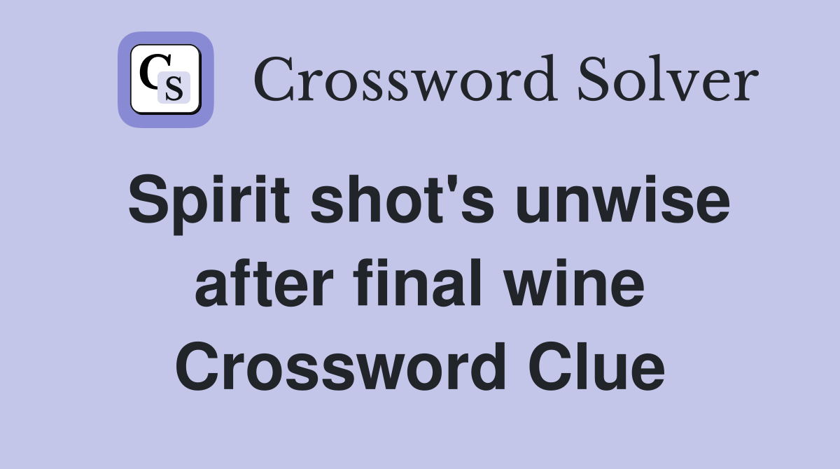 Spirit shot #39 s unwise after final wine Crossword Clue Answers
