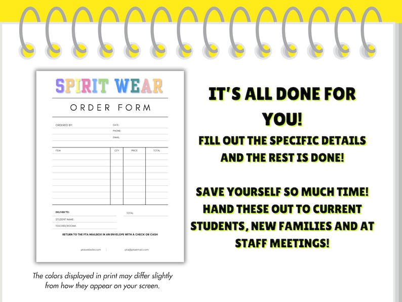 Editable Spirit Wear Order Form Canva Template PTA PTO Fundraiser Shirt