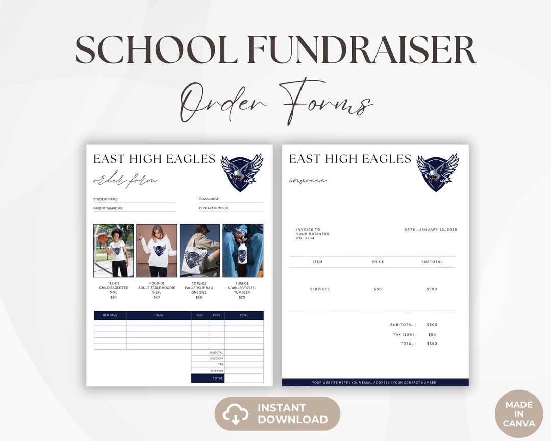 Spirit Wear Order Form Editable Fundraiser Order Invoice Template