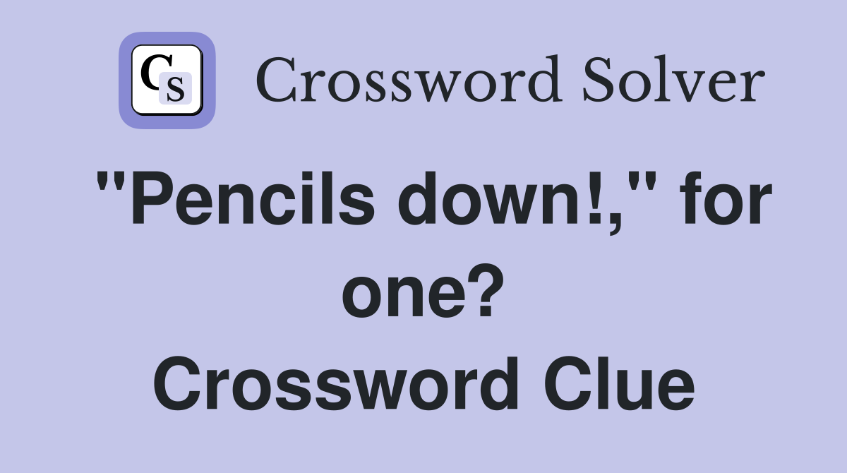 quot Pencils down quot for one? Crossword Clue Answers Crossword Solver