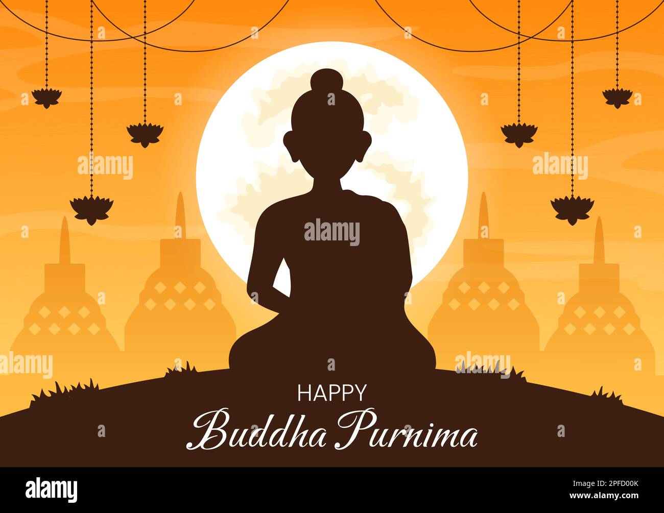 Happy Buddha Purnima Illustration with Vesak Day or Indian Festival to