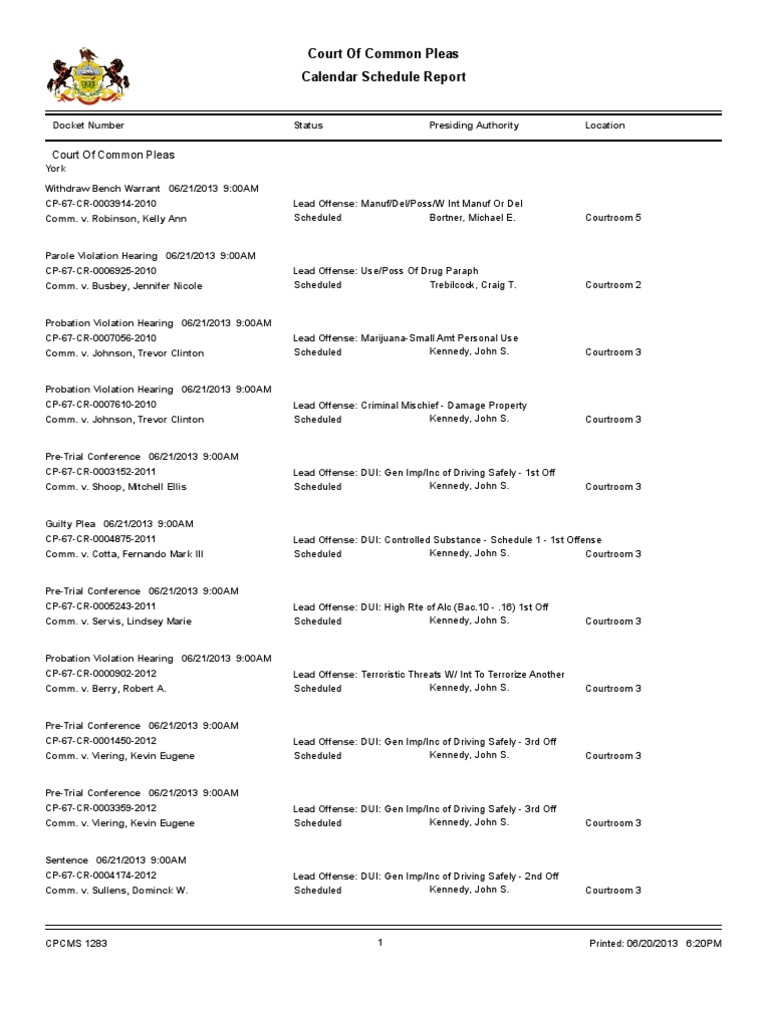 BEDFORD COUNTY COURT SCHEDULE Bedford/Blair Free Press